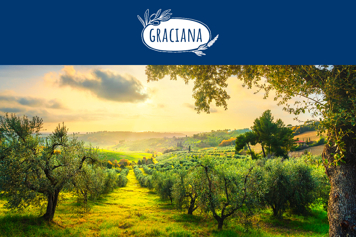Die Bildsprache ist mit dem weitläufigen Olivenhain in abendlicher Stimmung bewusst emotional gestaltet. Das satte Dunkelblau im Hintergrund symbolisiert das Mittelmeer und den wolkenlosen Himmel. Und genau dafür steht Graciana: Qualitativ hochwertige Pflanzen, die die natürliche, rustikale Leichtigkeit des Lebens am Mittelmeer widerspiegeln.